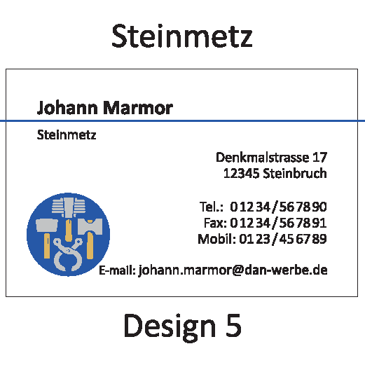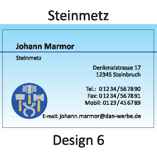 Design mit Ihren Angaben, standardmäßig wird in der Farbe