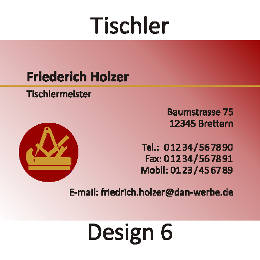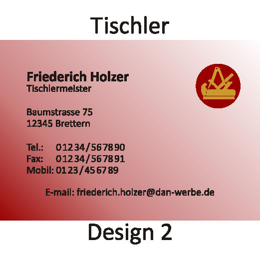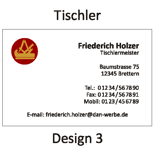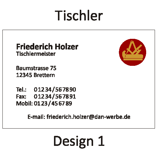 Design mit Ihren Angaben, standardmäßig wird in der Farbe