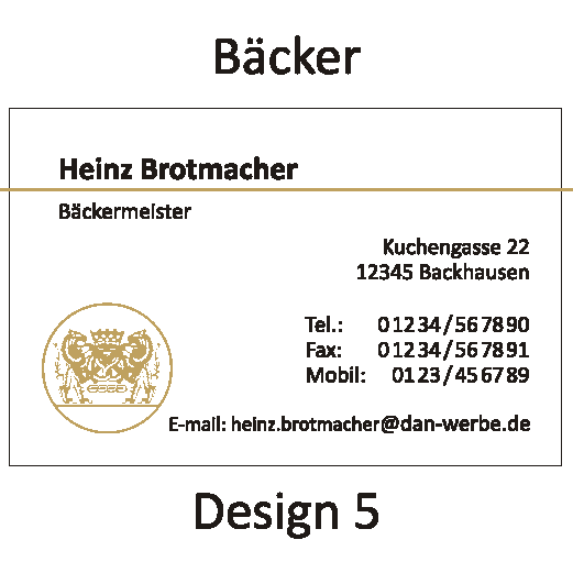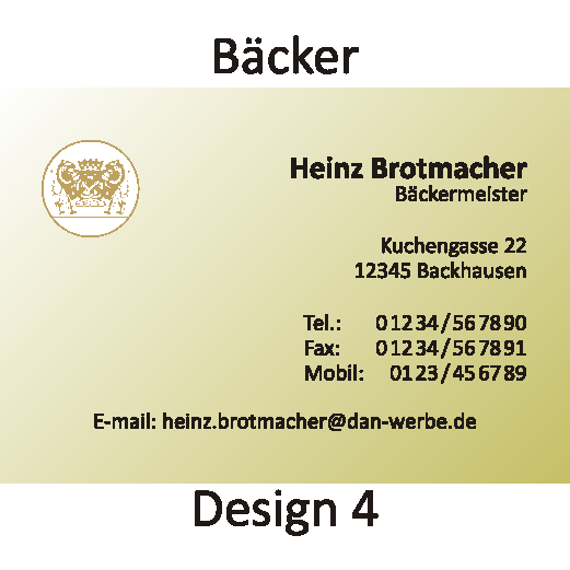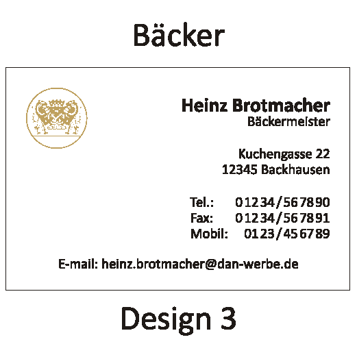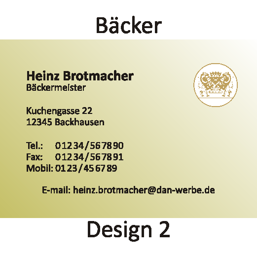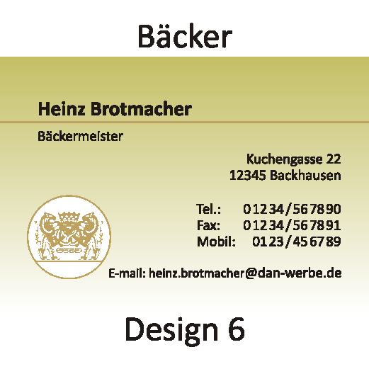 Bestellen Sie hier Ihre individuellen Visitenkarten mit Zunftwappen passend zu Ihrem Beruf oder Handwerk - natürlich ohne zusätzliche Versandkosten für die Lieferung innerhalb Deutschlands