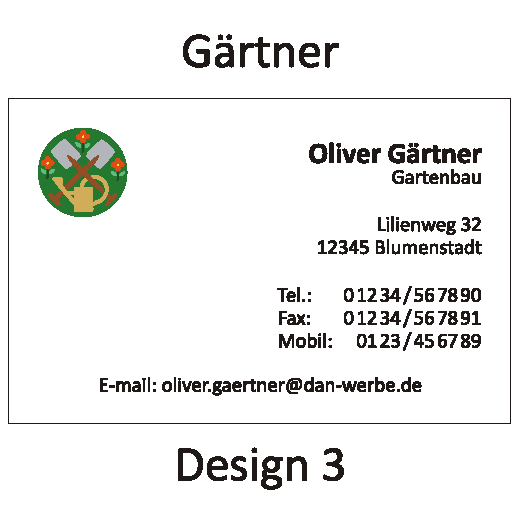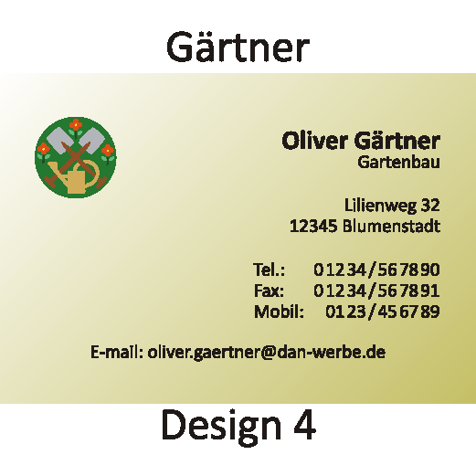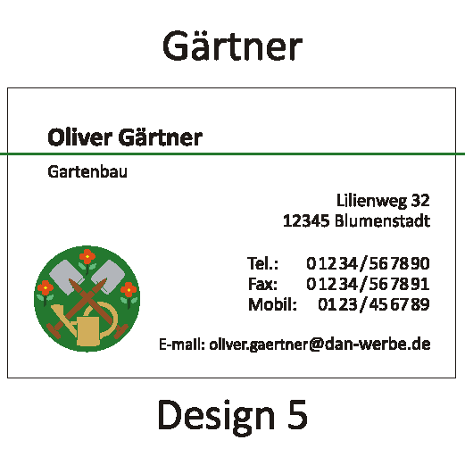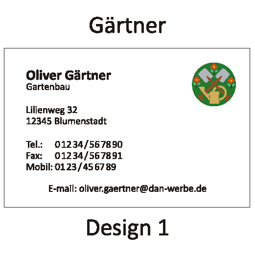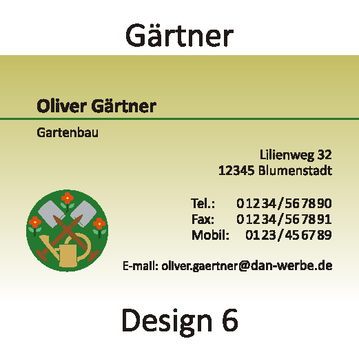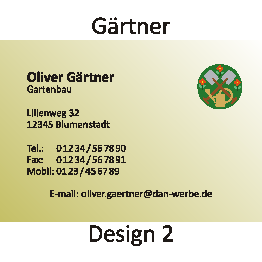 Design mit Ihren Angaben, standardmäßig wird in der Farbe